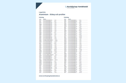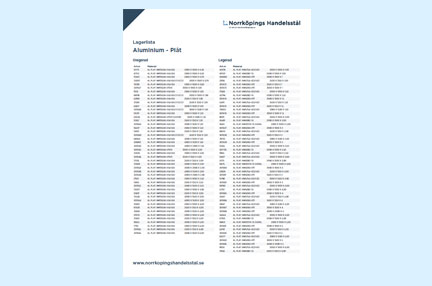 Norrköpings Handelsstål erbjuder aluminium i ett stort antal sorter med många värdefulla egenskaper, plåt, stång, profiler och rör. Alla produkter i de vanligaste legeringarna som våra kunder frågar efter. Du som företagskund eller privatperson kan hämta material med egen bil eller få det utkört med vår turbil.